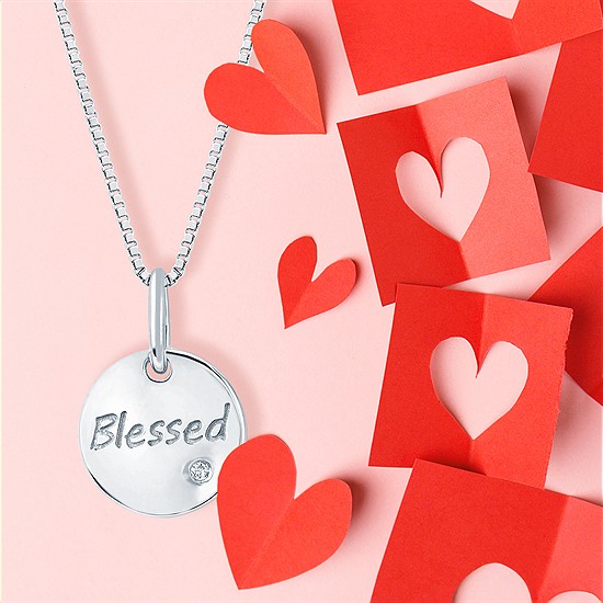 Diva Diamonds® Blessed Disc Pendant In Sterling Silver With .01 Ct. Diamond With 18" Box Chain (Adjustable To 16") And Lobster Claw Clasp