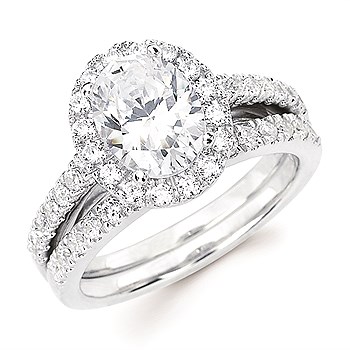 Engagement Ring Halo Bridal: 1/2 Ctw. Diamond Halo Semi Mount available for 1-1/2 Ct. Oval Center Diamond in 14K Gold